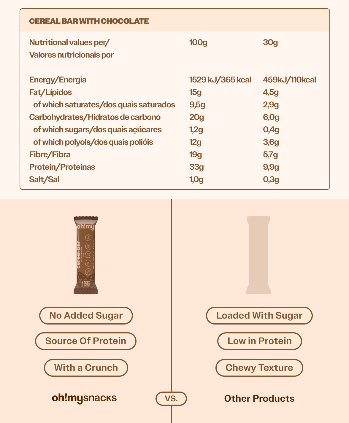 Our Cereal Bar with Chocolate is crafted to combine the richness of real milk chocolate with the nourishing power of protein and collagen, making it the ultimate treat for both taste and functionality. This bar is designed to fuel your day with protein and fibre, offering a guilt-free way to enjoy your favourite flavours.