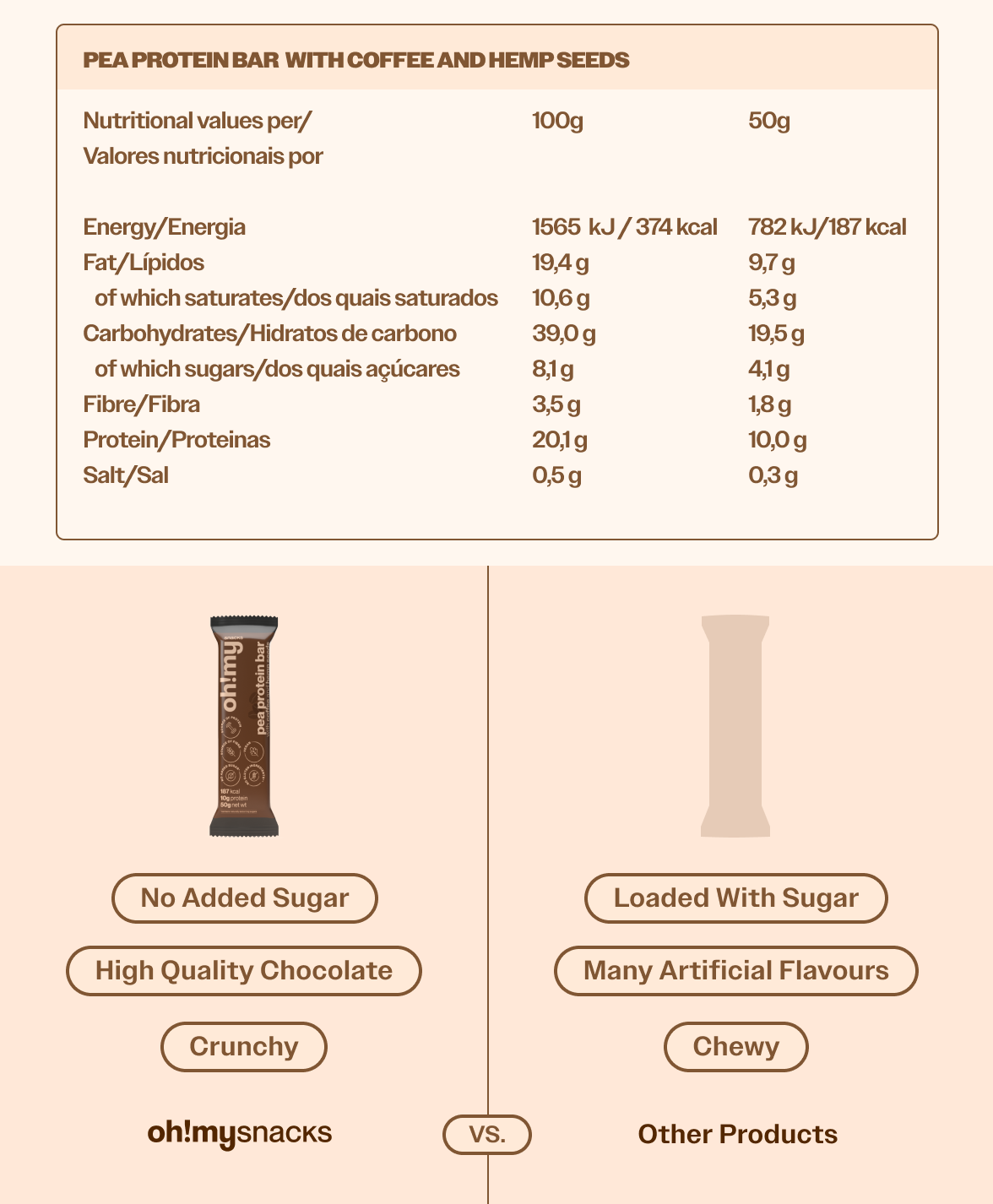 Pea Protein Bar Tiramissu and Hemp Seeds