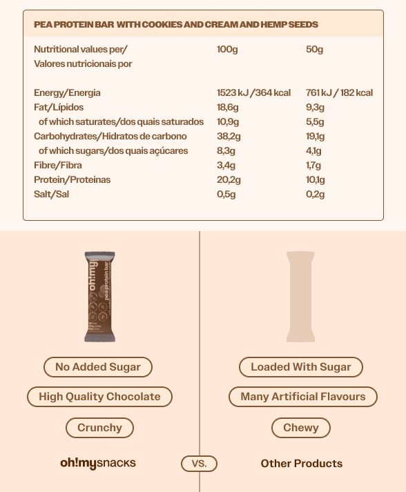 Pea Protein Bar With Cookies and Cream and Hemp Seeds