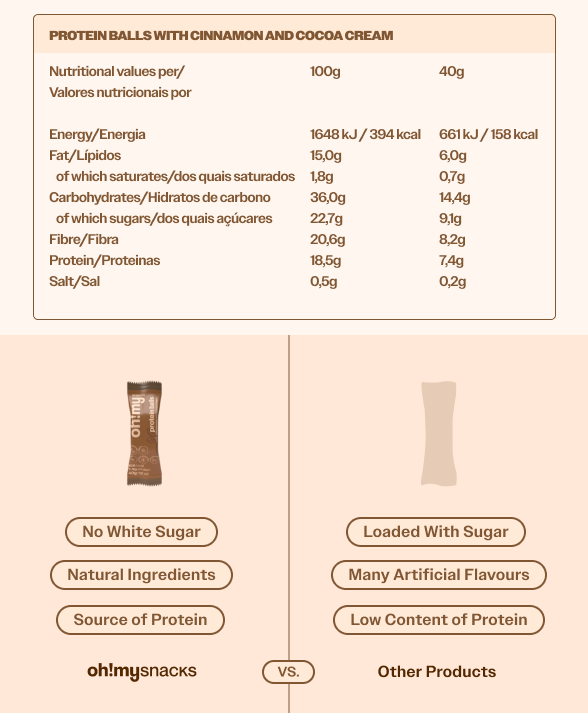 Our Protein Balls with Cinnamon and Cocoa Cream bring together the warm spice of cinnamon, the richness of cocoa, and the creaminess of almonds for a snack that feels as good as it tastes. Source of protein, fibre and healthy fats, it's a snack that will help you enrich your day and boost your global health.