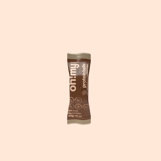 Bolas Proteicas de Ervilha com Cobertura de Cacau e Creme de Avelã